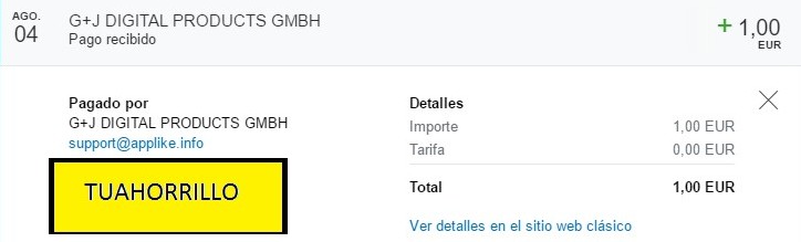 Cuarto pago ya de la que es sin duda la App de moda y la mas rentable del momento, ya os hable de ella aquí  Ahorra con AppLike sin duda una App muy recomendable que si la trabajas te dará buenos resultados a ti y si tienes referidos mucho mas.