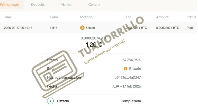 Te dan la opción de registrarte en las típicas páginas como YUNO, Pollfish etc…para completar sus tareas y sumar mas satoshis.